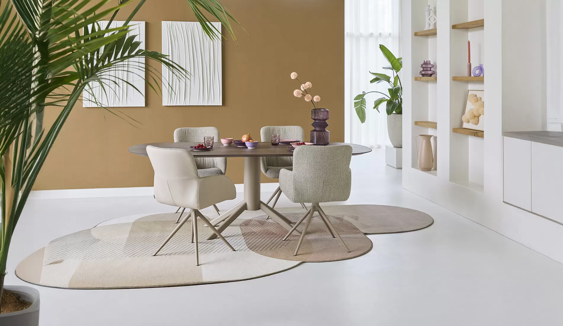 TableTalk_platovaal_eikenbianco_bp100_DAISY_boldkurkuma_meritpopcorn_alpinebronze_adoregold_RAL8001-2_WEB