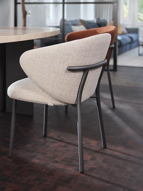Der Calix Stuhl verbindet ein modernes, einladendes Design mit vielen Make-it-Yours-Optionen. Für ein optimales Sitzvergnügen sorgt die geschwungene Rücken- und Armlehne. Der Korpus wird aus mehreren Schaumstoffschichten gefertigt, die sich um einen stabilen Metallrahmen legen. So sorgt diese extra starke Polsterung für einen ultimativen Komfort. Bei dem Untergestell haben Sie die Wahl zwischen einem Stativ-Fuß (optional drehbar) oder einer klassisch vierbeinigen Variante. Auch mit légère Rücken.