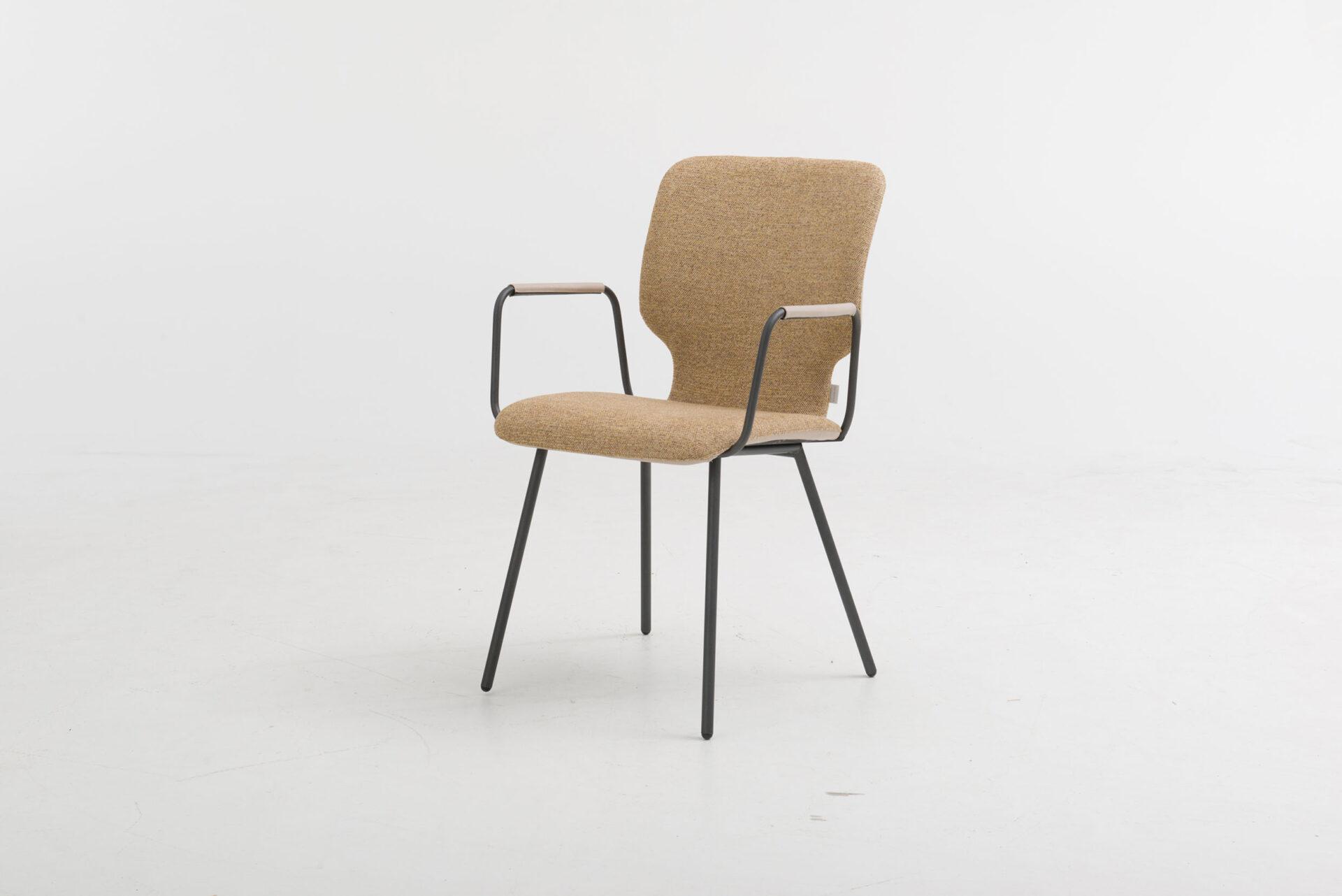 This chair embodies an impressive silhouette with a broad back and convinces with its straight, powerful, and reliable appearance. This unique chair is made of padded wooden shells on a sturdy metal frame and was designed by the design team of bert plantagie.