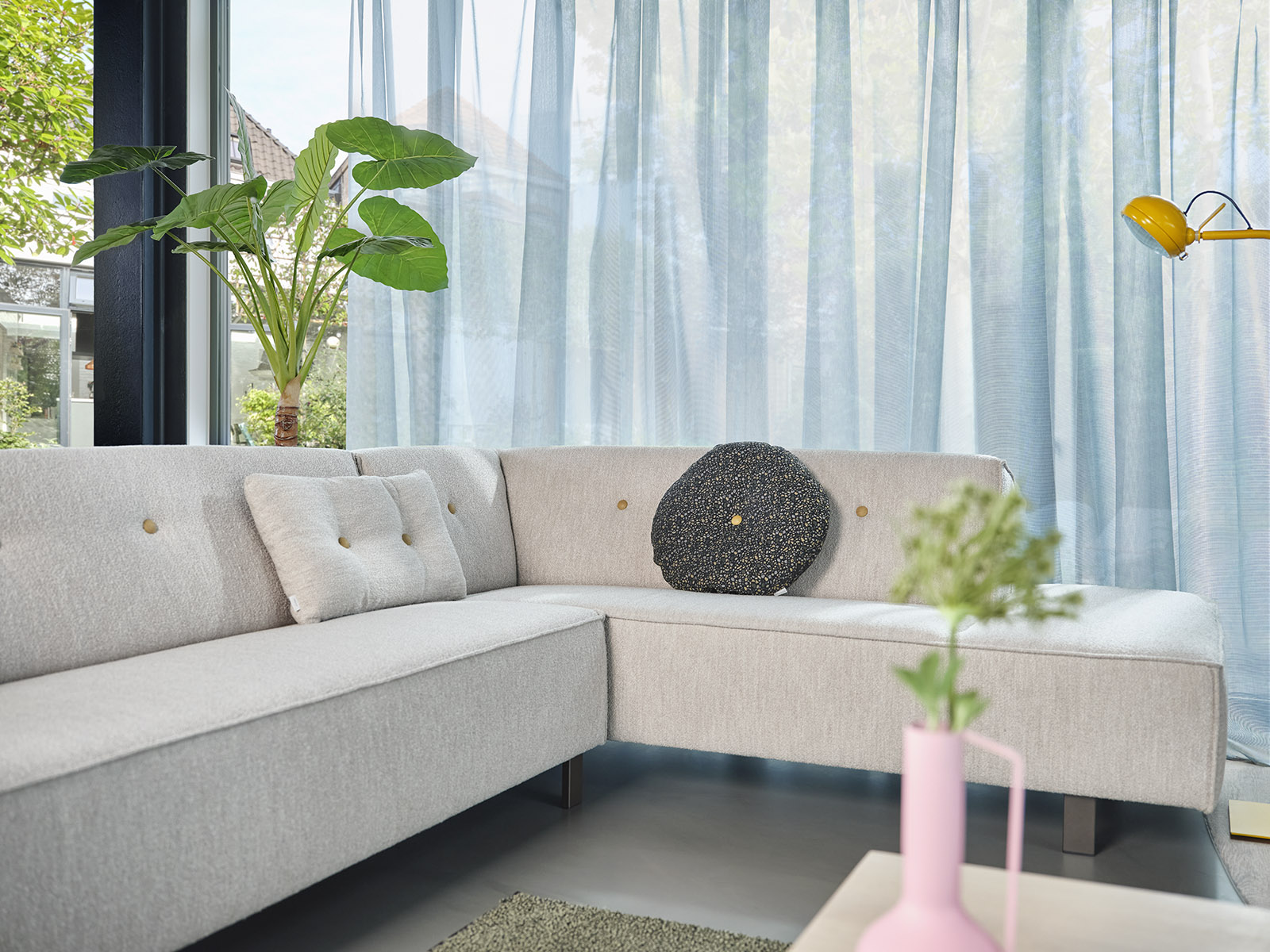 We offer a matching powder coating for almost every colour of fabric and/or leather in our collection, which allows for the most beautiful ton-sur-ton combinations. This wide range of possible powder coatings also ensures that our products can be perfectly coordinated with other aspects of the interior. And that you can make the most mind-blowing creations!
