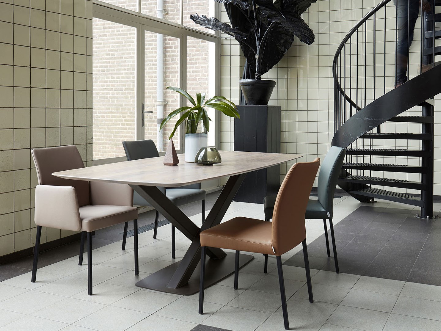 A selection of our most popular tables from the bert plantagie collection is available with a ceramic table top. Ceramic is perfect as a table top material. It is resistant to very high as well as very low temperatures and is extremely shock-, impact- and scratch-resistant. Other advantages of ceramic are that it is very sanitary, easy to clean and 100% natural. Ceramic is a natural product. This means your ceramic table top can show colour variations, pigmentation spots, imperfections and spots over its surface area as well as stripes (depending on the angle of surface illumination). It can also occur that your ceramic table top differs from the sample or showroom model that you might have seen, in for example the gloss level, the vein structure or the formation of the ceramic layers. Avoid rings, scratches and damages from objects that are placed on the table top. These kinds of stains and damages are explicitly excluded from the guarantee. Always apply felt to vases, glasses, mugs, pans, and other such objects, or use coasters.