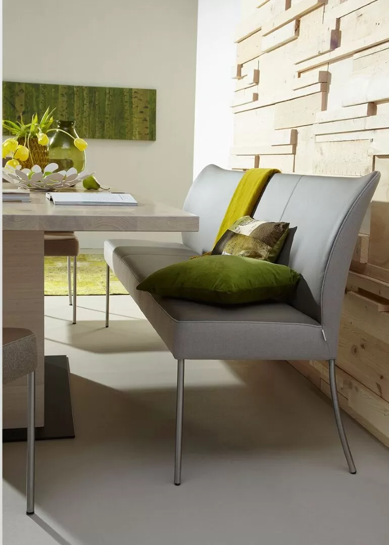 Eetkamerbank Monica combineert perfect met de zeer populaire stoelen Duo en Spargo. De Monica schuift makkelijk aan en is in elke gewenste breedtemaat tussen 120 en 300 cm te verkrijgen. Dit meubel beschikt over tal van opties, variërend van een bies tot vierkante poten. Ook in een hoekopstelling verkrijgbaar.